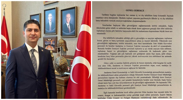 Milliyetçi Hareket Partisi (MHP) Genel Başkan Yardımcısı ve Kayseri Milletvekili İsmail Özdemir, Emniyet Teşkilatı personeli için Üstün Cesaret ve Feragat Madalyası ile ödüllendirilmelerini sağlayacak kanun teklifini Meclis'e verdi.