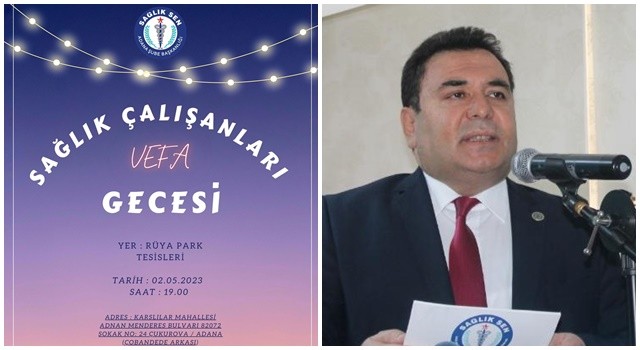 Sağlık-Sen Adana Şube Başkanlığı'nca 'Sağlık Çalışanları Vefa Gecesi'nin düzenleneceği bildirildi.