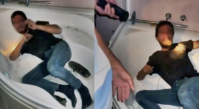 Hırsızın hasarlı evde banyo keyfi başlamadan bitti.